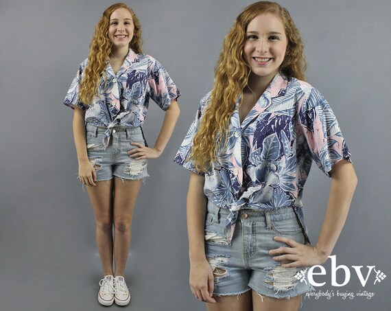 Hawaiian Blouse Hawaiian Shirt Tie Front Blouse Vacation Etsy Sweden