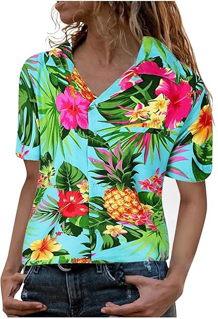 Hawaiian Shirts For Women Collared Casual Hawaii T Shirt Luau Party Beach Funky Pockt Printed Button Down Blouse Summer Tops At Amazon Women S Clothing Store